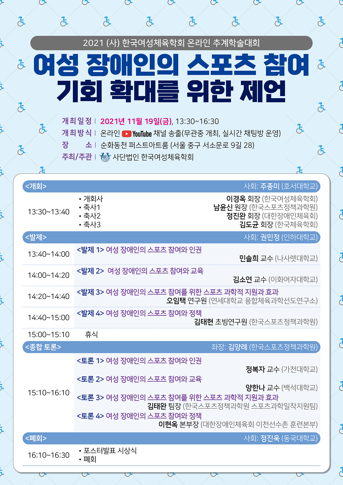 □ 포스터 발표 신청 자격: 2021년도 기준 한국여성체육학회 정회원 및 평생회원